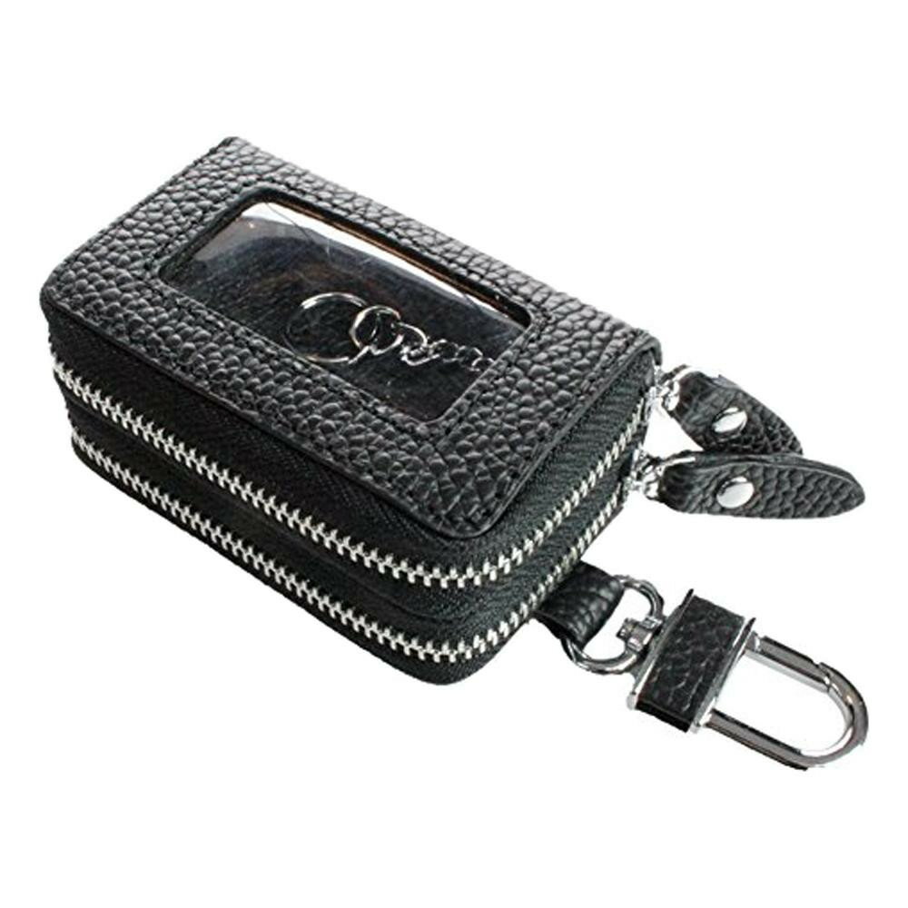 スマートキーケース 収納 ケース キーケース 窓付きダブルジッパー ダブルファスナー カバー ダブルポケット キーリング 車キーケース クリア窓 窓付き カラビナ付き リモコン スマートキーカバー メンズ レディース